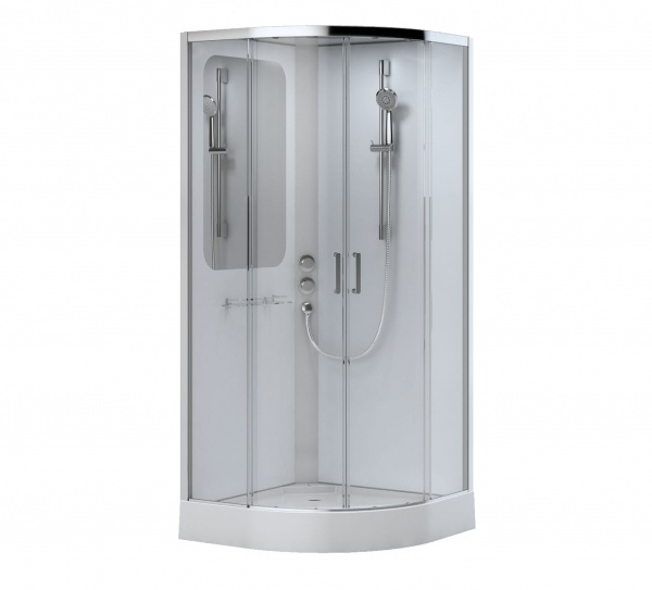 Угловая душевая кабина Bogema 100T с низким поддоном и раздвижными дверьми. Модель оснащена термостатом.