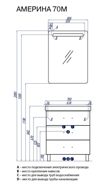 | Глубина раковины: | 70 см |