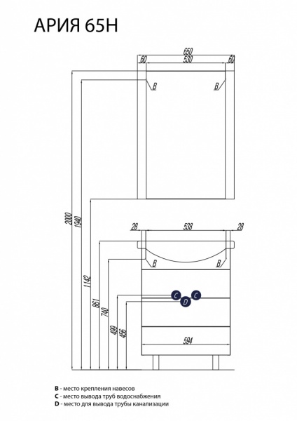 Тумба-умывальник с раковиной Акватон Ария 65 Н (чёрный глянец) - Характеристики