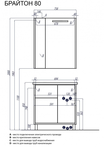 Зеркальный шкаф Акватон Брайтон 80 - Бренд