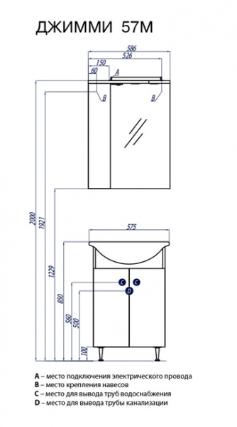 Набор мебели Акватон Джимми 57 М - Характеристики