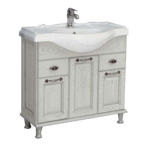 Тумба-умывальник Акватон Жерона 85 (белое серебро) с раковиной - Описание