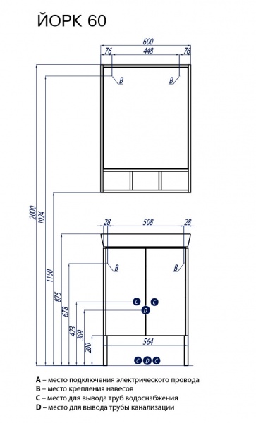 Набор мебели Акватон Йорк 60, белый - Характеристики