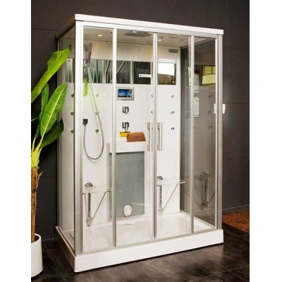 Функциональные возможности этой модели поражают воображение! Это гидромассаж, тропический душ, турецкая баня. Кроме этого, предусмотрено радио, телевизор и телефон с громкой связью. Комфортный микроклимат обеспечивают вентиляция и верхняя подсветка.