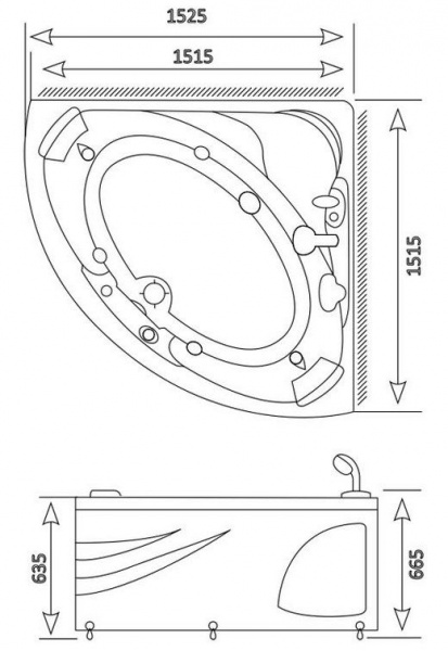 Угловая ванна с гидромассажем Appollo SU-1515 - Характеристики