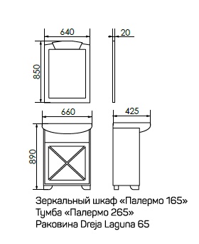 Набор мебели Atoll Палермо 65 витрина - Характеристики