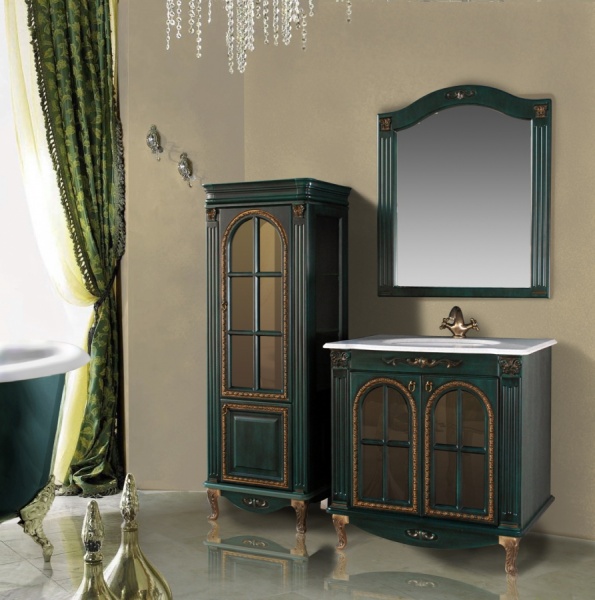 Классический стиль в интерьере всегда предполагает высокое качество материалов исполнения, диктует цветовую гамму и требует внимательного отношения к деталям. Комплект «Венеция» воплощает эти каноны, привнеся в них нечто новое. Фрезеровка и декоративный орнамент, каменная столешница, и главное — сочное сочетание темной зелени и благородного золота. Для кого-то такой цвет мебели в ванной может показаться слишком смелым, ведь комплект «Венеция аквамарин» — это определенно "мебель не для всех".