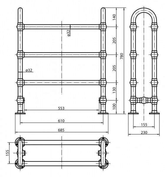 Полотенцесушитель напольный Cezares NAPOLI-01 хром - Описание