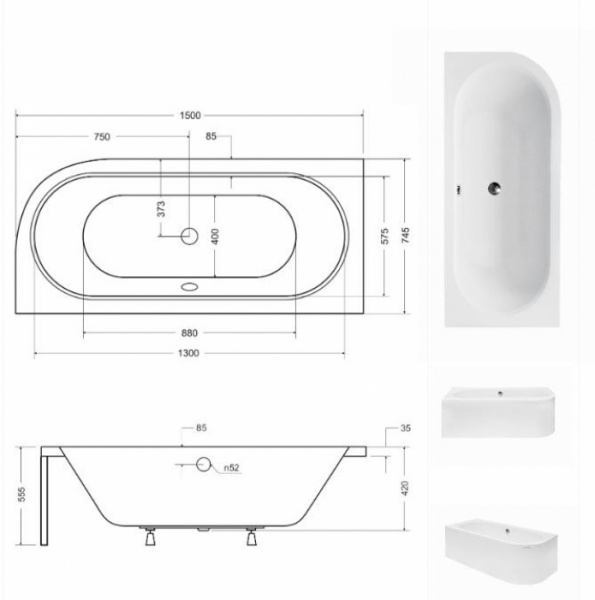 Ванна акриловая Besco AVITA WAV-150-NL - Характеристики