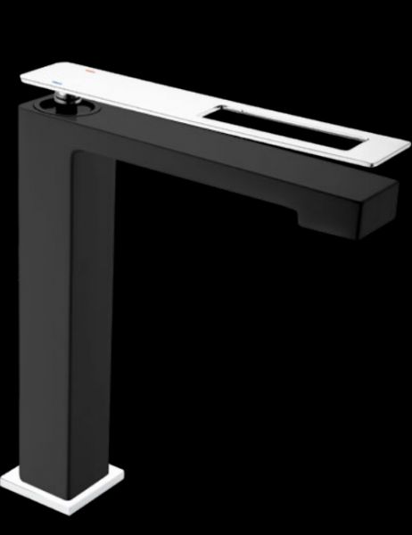 Смеситель для умывальника Q 142-B из латуни с матовым, черным покрытием. Модель имеет однорычажное управление.