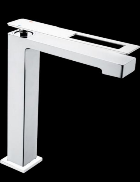 Смеситель для умывальника Q 142-CR из латуни с хромированным покрытием. Модель высокая с однорычажным управлением.