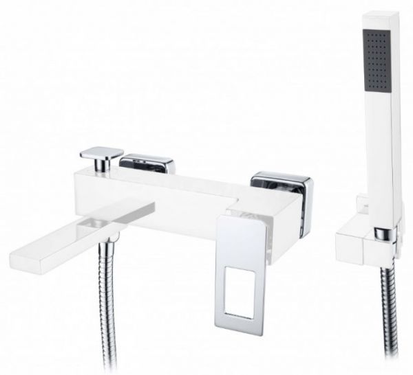 Смеситель для ванны Q 143-W из латуни с белым покрытием. Конструкция встраиваемого монтажа с однорычажным управлением.