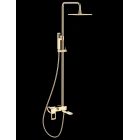 Стойка для душа Q 148-G из латуни в золотом исполнении с однорычажным управлением. Конструкция оснащена тропическим и ручным душем.