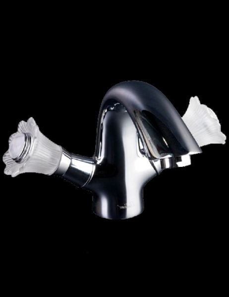 Смеситель для умывальника 271-Camelia из латуни с хромированным покрытием. Конструкция врезается в раковину и имеет два вентиля для управления.