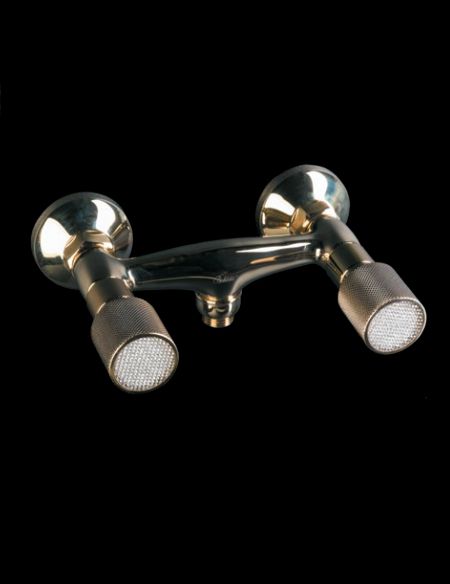 Смеситель для душа Royal Crystal 294-Royal/CRST настенного монтажа из латуни в золотом исполнении. Конструкция двухвентильного управления с камнями Swarovski.