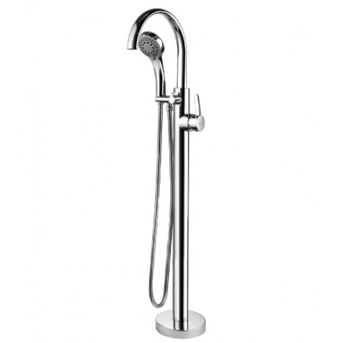 Напольный смеситель Brillante однорычажного типа с ручной лейкой. Модель имеет хромированное покрытие.