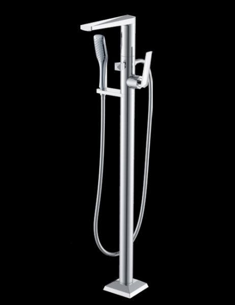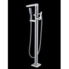 Смеситель напольный Venturo 379 из латуни с хромированным покрытием и душевой лейкой.