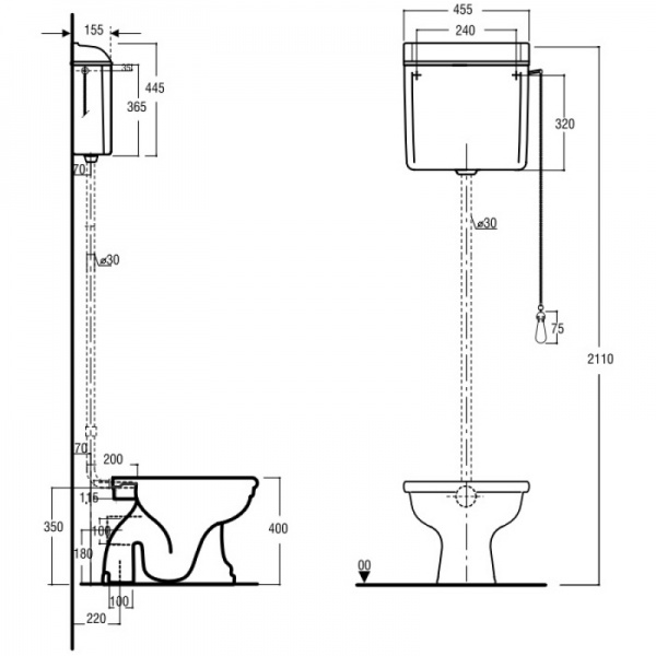 Бачок подвесной для унитаза Ceramica Althea ROYAL, белый - Характеристики