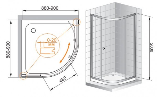 Душевой уголок Cezares ANIMA R1 90 - Характеристики