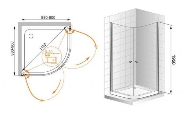 | ELENA-R-21-90-P-Cr: | 90 х 90 х 195 см |
