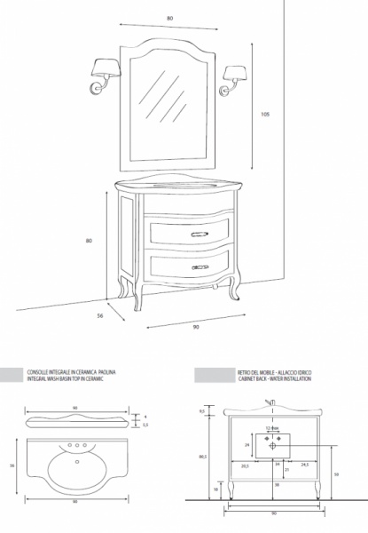Тумба с раковиной Cezares LAURA 90 - Характеристики