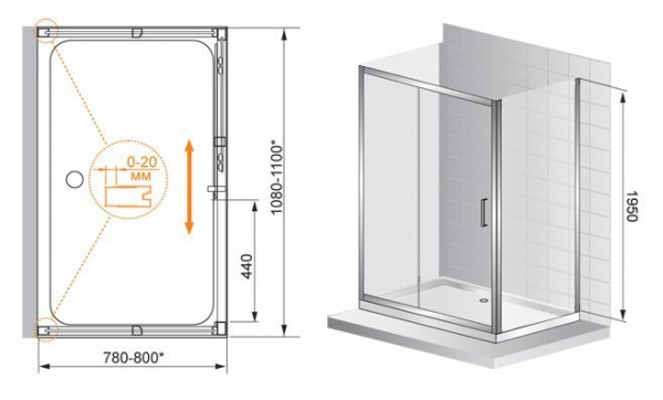 Душевой уголок Cezares PORTA-AH-12-110/80-C-Cr - Характеристики