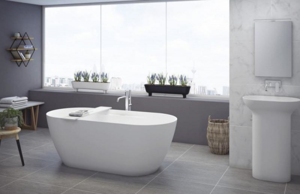 Элегантная вытянутая форма этой отдельностоящей ванны прекрасно впишется в каждый современный интерьер.