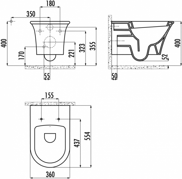 Унитаз подвесной с биде (чаша) Creavit Moon MO320.00000 - Характеристики