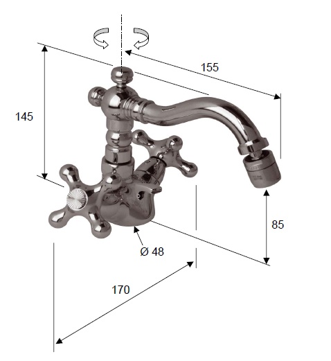 Смеситель на биде Daniel Rubinetterie Revival, хром - Характеристики