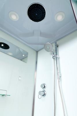 Угловая душевая кабинка D80S закрытого типа размером 80х80х220 см. Модель оснащена глубоким, усиленным поддоном 45 см благодаря тому, что модель литая в ней удобно принимать душ в положении сидя.