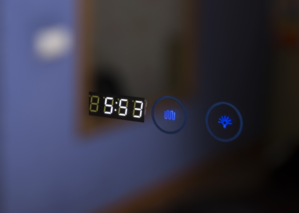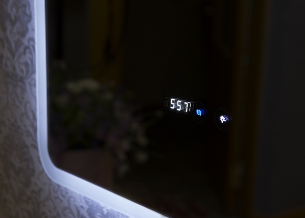 Прямоугольное зеркало К-70 с подсветкой и электронными часами.
