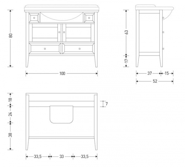 EBAN Arianna База под раковину 105см без ручек, цвет noce