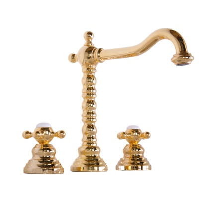 Смеситель для раковины Gattoni Vivaldi цвета золото 24 кт двухвентильного типа управления на 3 отверстия монтажа.