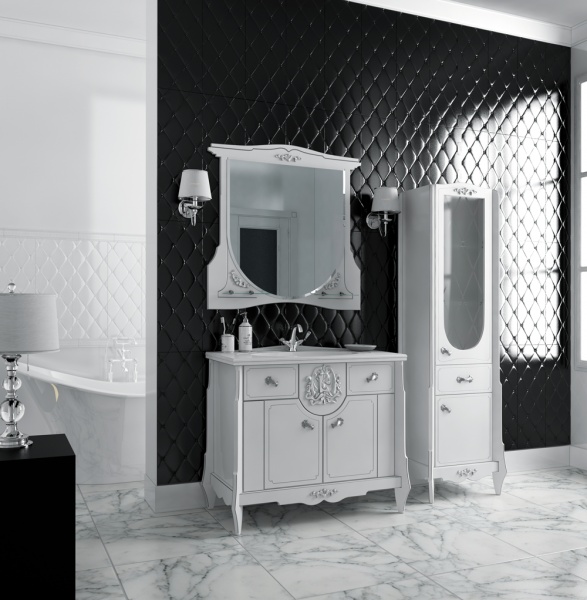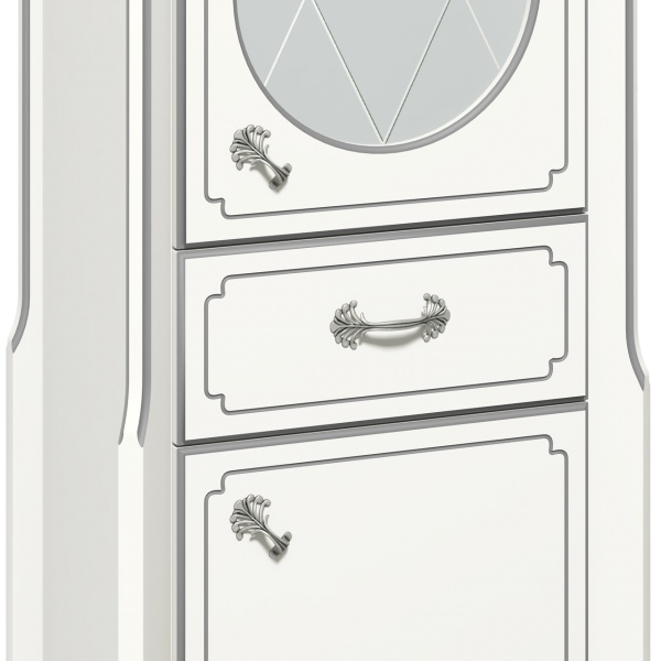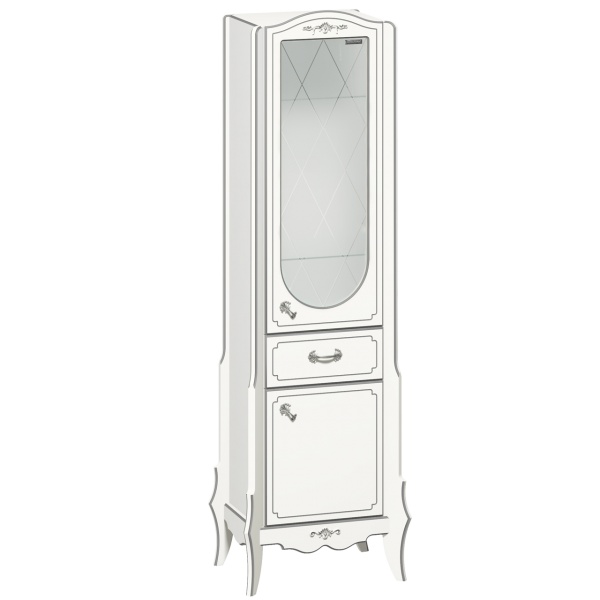 Напольный пенал Луиза 59 подвесного типа монтажа белого цвета с хромированной, матовой фурнитурой.