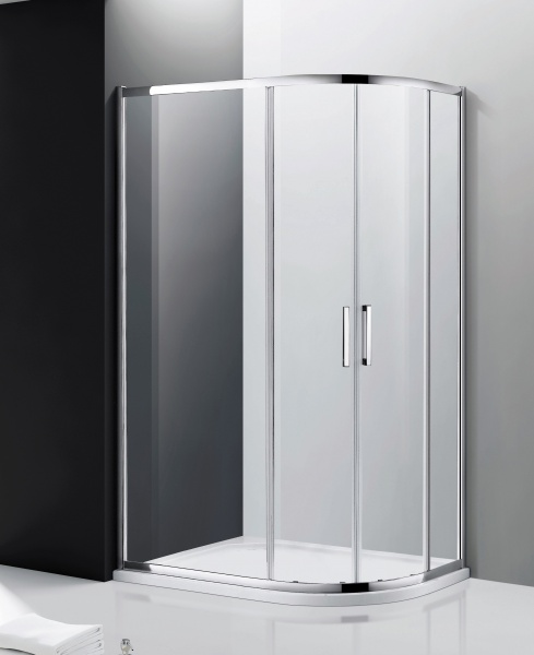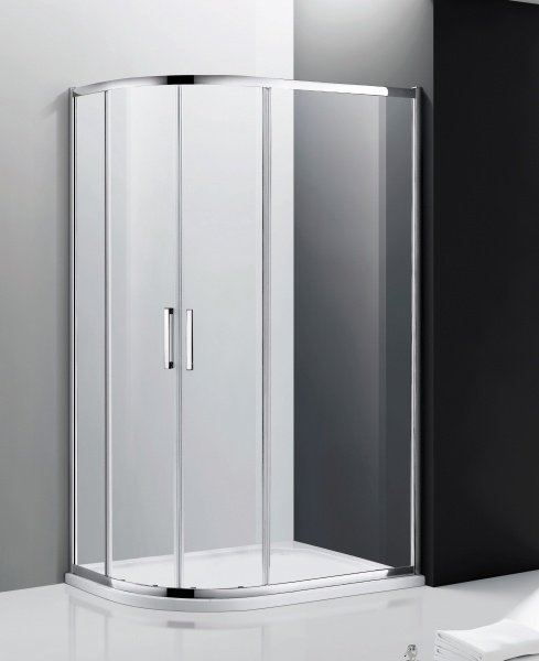 Душевой уголок полуовальной формы, исполненный в закаленном безопасном стекле.
