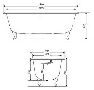 Овальная чугунная ванна Elegansa Gretta Bronze - Характеристики