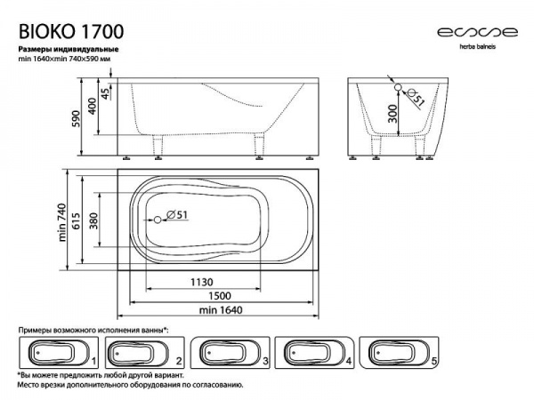 Артикул: BIOKO 1700 изготавливается по размерам заказчика Ванна от 1640x695х590