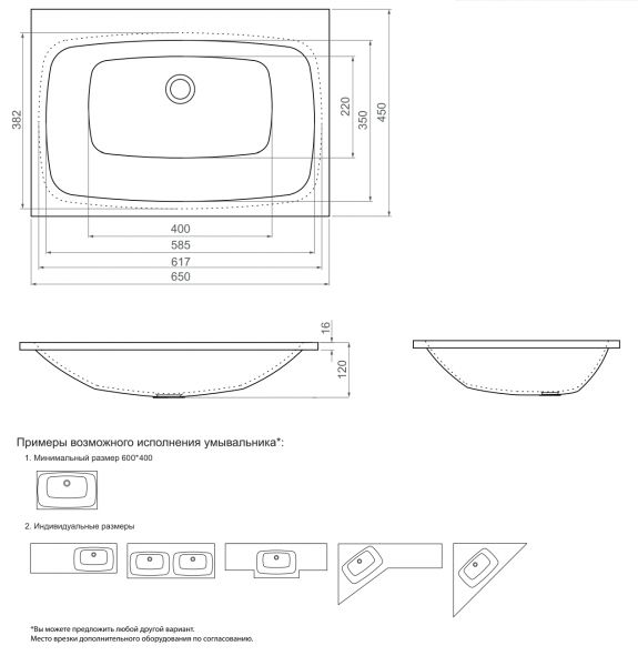 Артикул: УМЫВАЛЬНИК IN F 650/1 изготавливается по размерам заказчика
