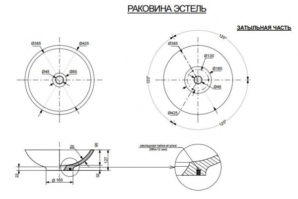 Накладная раковина Эстет Эстель - Описание