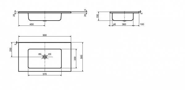 Раковина Каре 90 имеет правильную прямоугольную форму и большую рабочую зону, что делает ее использование максимально комфортным.