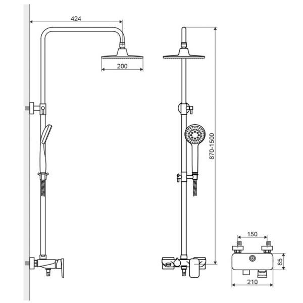 Душевая стойка EXCELLENT Rain Altar ARAC.SY.781CR - Характеристики