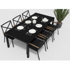 Обеденный стол Calma можно приобрести как по отдельности, так и в составе обеденной группы. Каркас стола выполнен из всесезонного алюминия с порошковым покрытием темно-серого цвета (карбон). Столешница глянцевая, изготовлена из закаленного стекла толщиной 5 мм с нанесением черного цвета с помощью шелкотрафаретной печати.