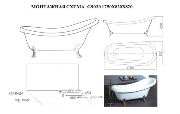 Акриловая ванна на ножках Gemy G9030 С - Характеристики
