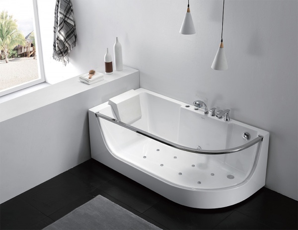 Асимметричная ванна G9227 Milk SPA L с прозрачным экраном и аэромассажем.