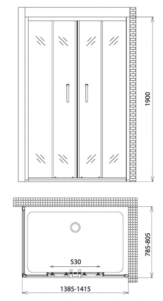 Прямоугольный душевой уголок Victoria S30192E-A80 140х80х190 см с низким поддоном и раздвижными дверьми.