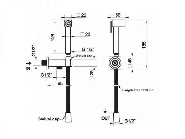 Гигиеническая лейка RETTANGOLO SHOWER с держателем и переходником, хром.