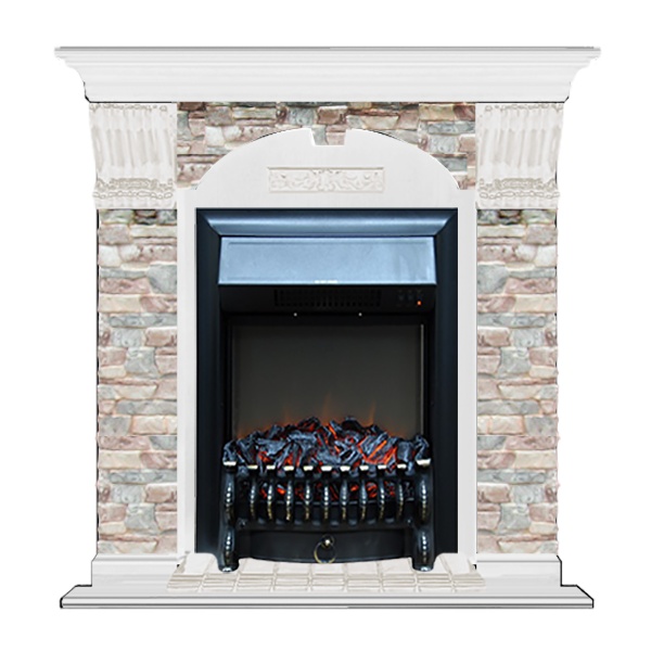 Камин для дома и дачи Glenrich Арочный Грот цветной белый с топкой Fobos bl