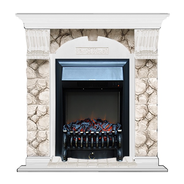 Камин для дома и дачи Glenrich Арочный Карелия белый с топкой Fobos bl - Описание