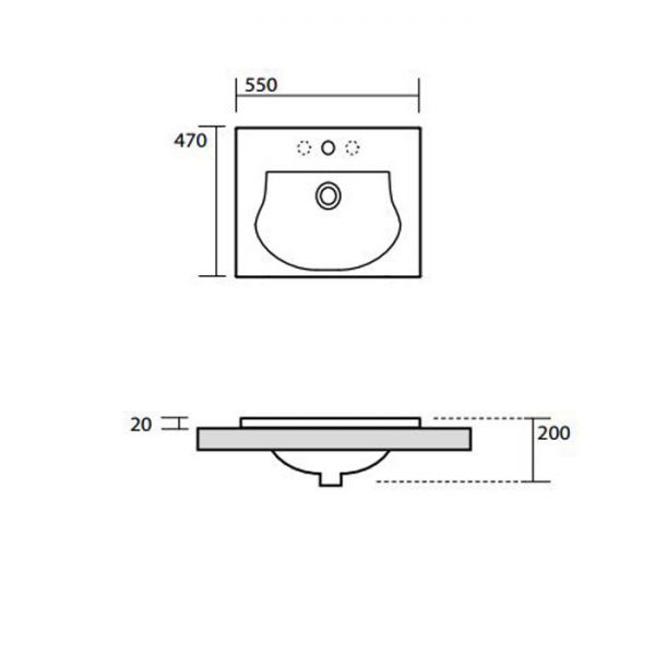 Раковина встраиваемая Bentley 55х47хh2 см с 1 отверстием под смеситель. Цвет белый (4 стороны глазированы).