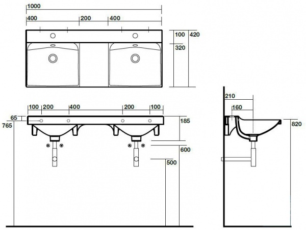 | Особенности: | раковины ширина 100 см, раковины белые, раковины двойные |